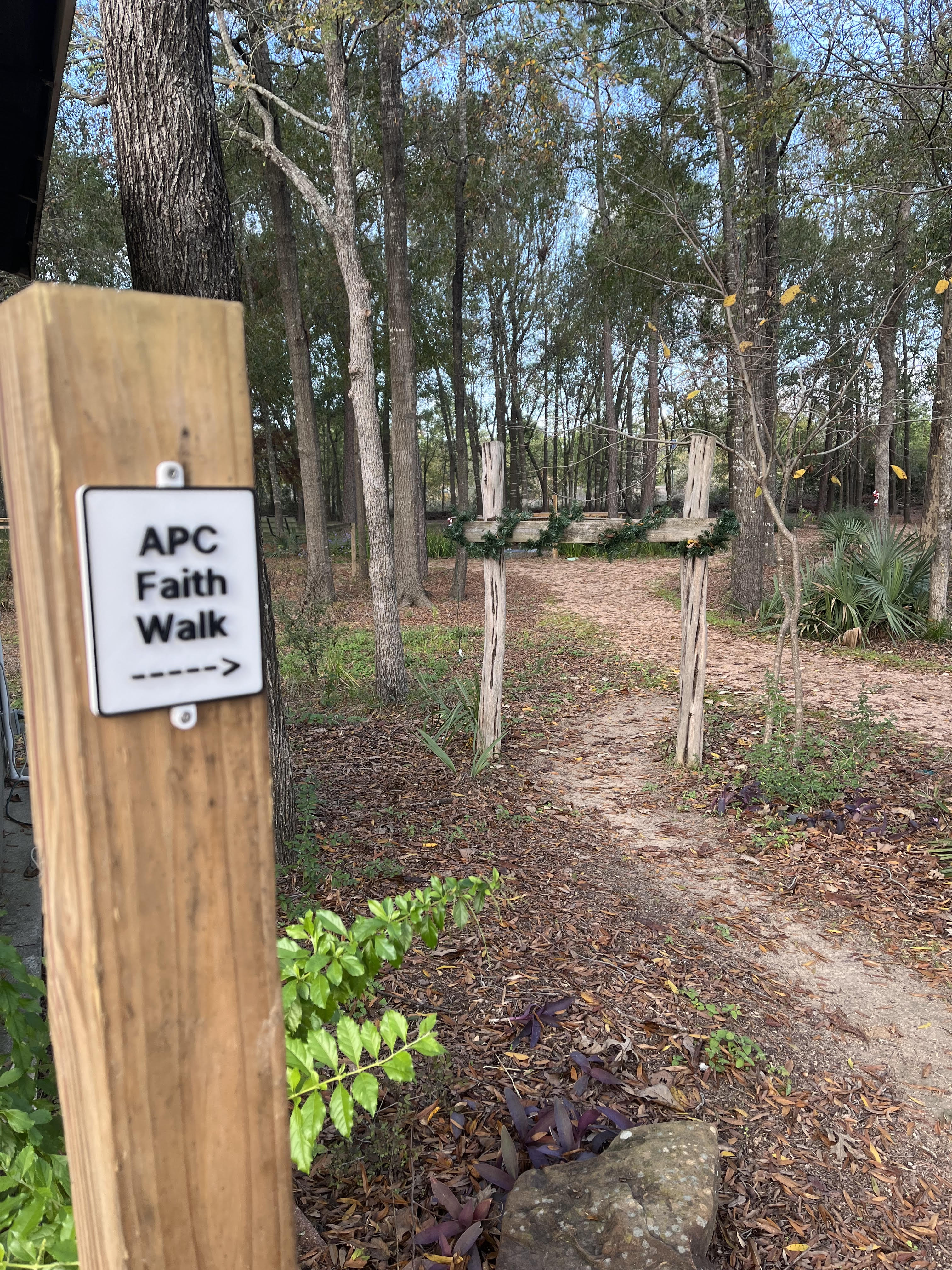 How do we cultivate and nourish our faith? APC offers you a new possibility: Come to the garden and pray. In our GATE wooded area outside our church doors is a new Faith Walk. We invite you to a quiet time outdoors to contemplate what God has done in creation and to meditate on what God is doing in your life. There’s always a potential that God might provide a sense of a new call in your life ‐ or ‐ that God seeks to comfort you right where you are.